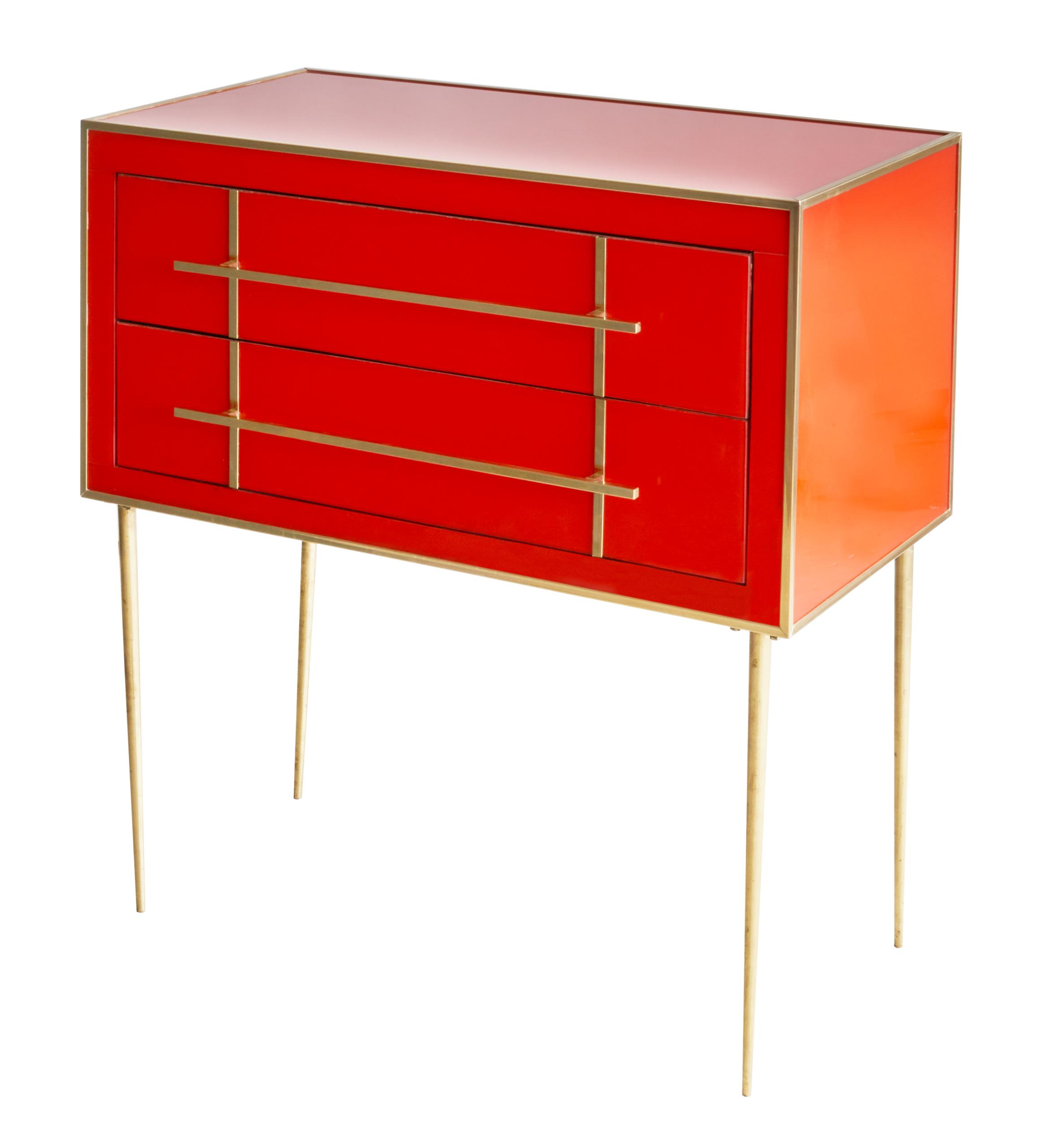 MOBILE 2 CASSETTI LEGNO VETRO OTTONE