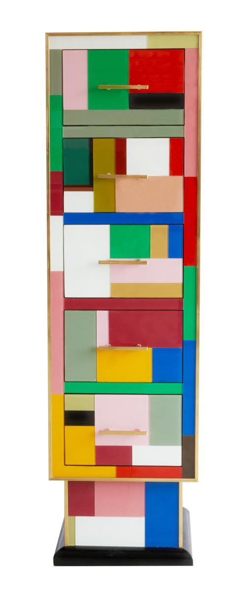 MOBILE 5 CASSETTI LEGNO VETRO OTTONE