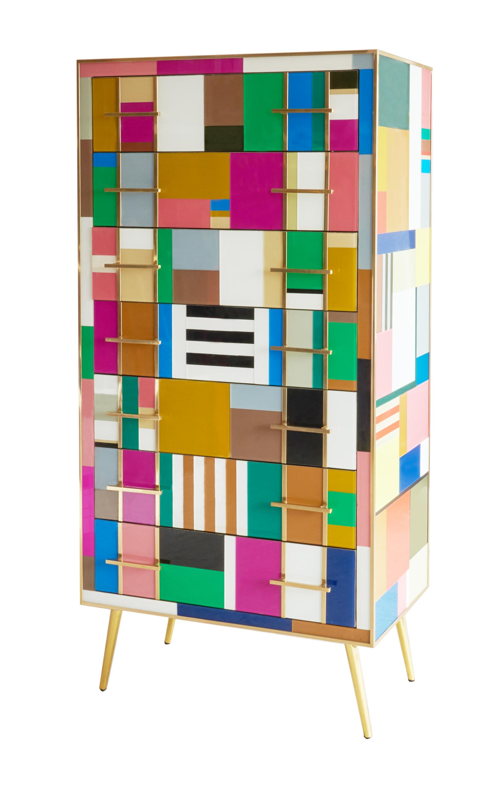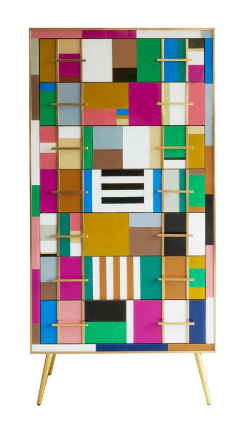 MOBILE 7 CASSETTI LEGNO VETRO OTTONE