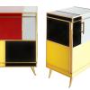 COMODINO 1 ANTA LEGNO VETRO OTTONE
