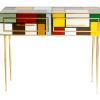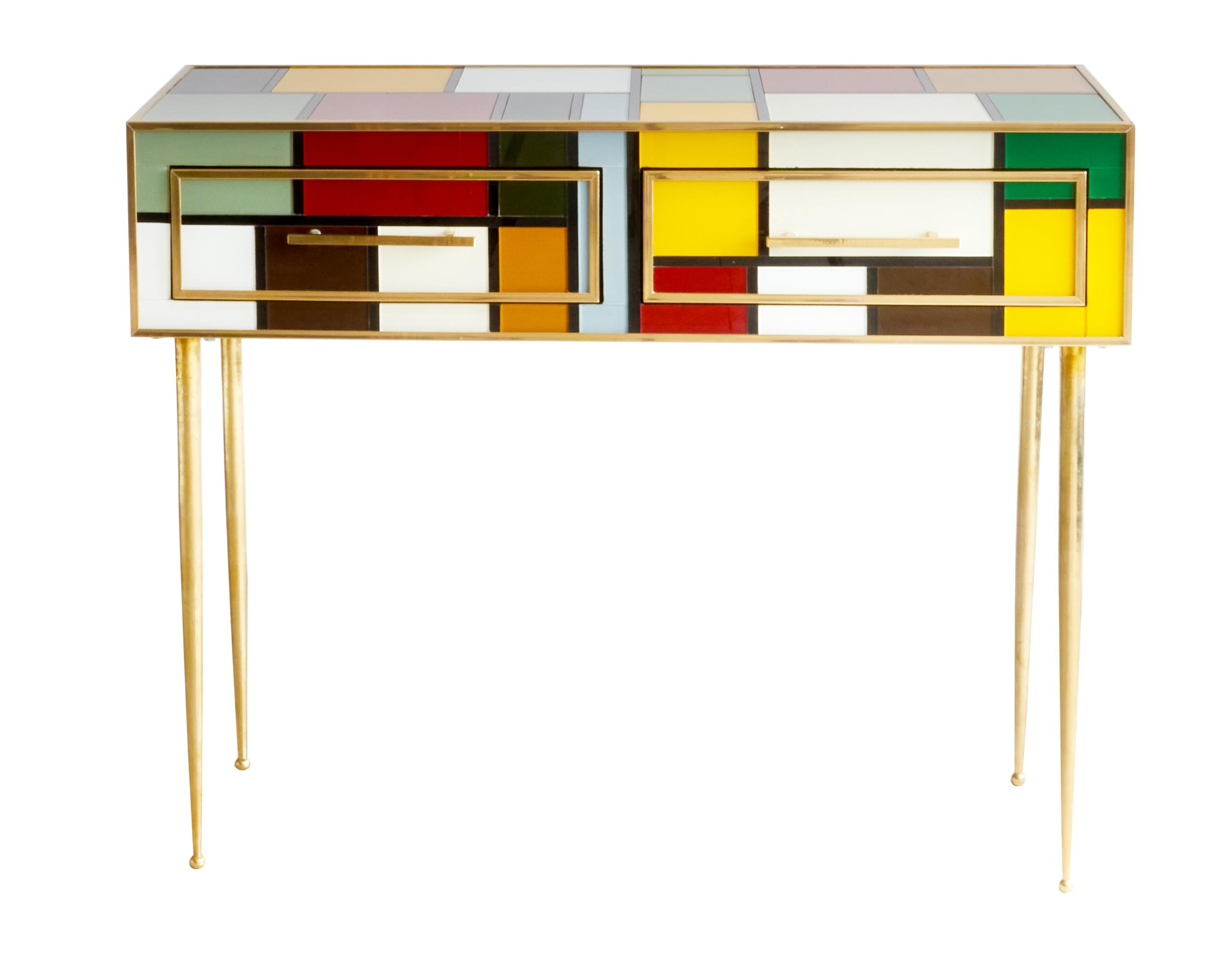CONSOLLE 2 CASSETTI LEGNO VETRO OTTONE