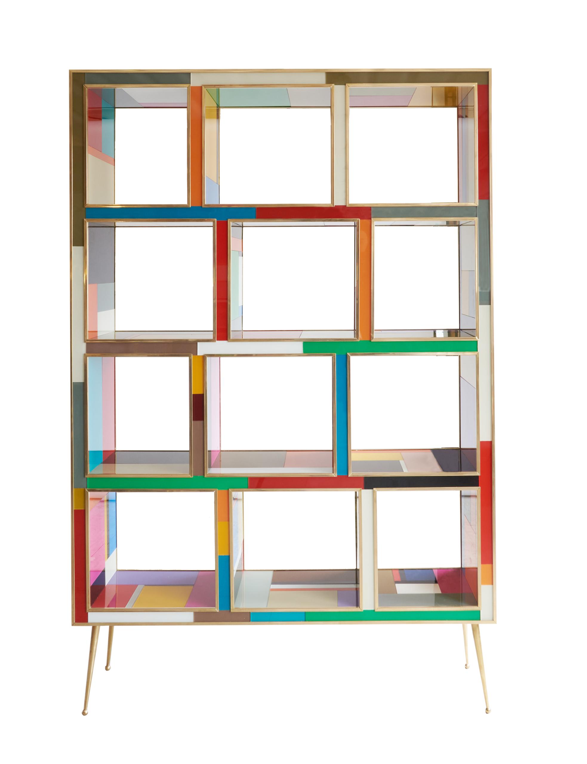 MOBILE BUFFET 4 CASSETTI LEGNO VETRO OTTONE