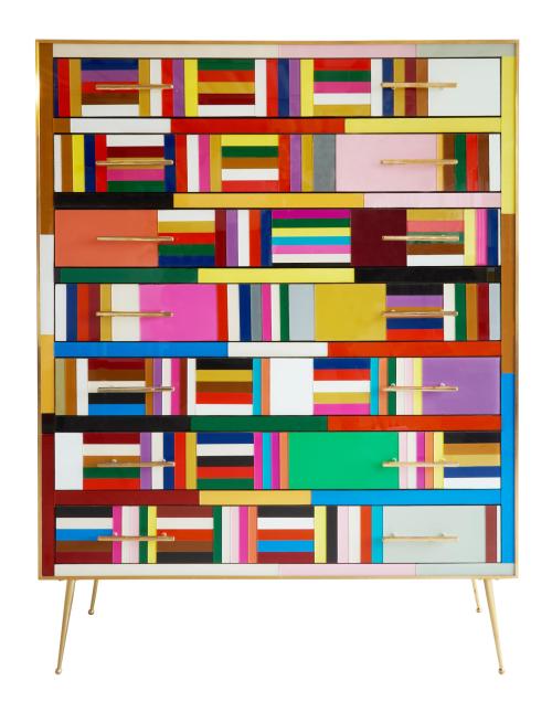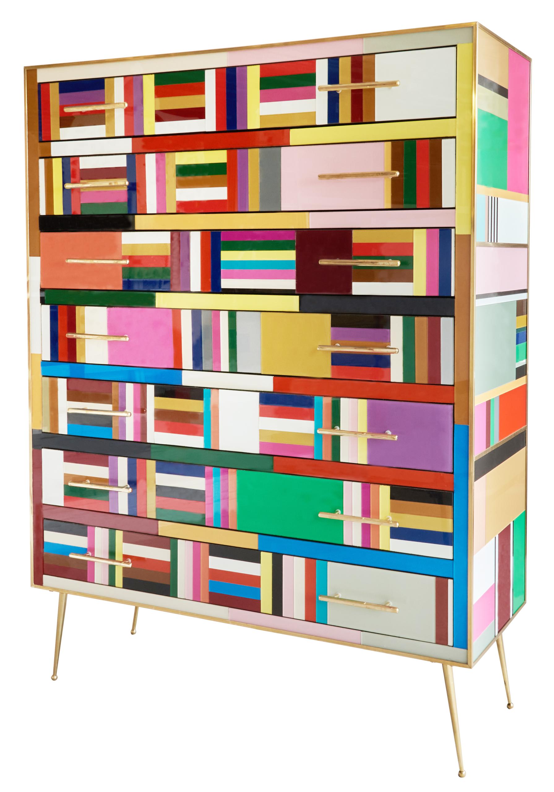 CASSETTIERA 7 CASSETTI LEGNO VETRO OTTONE