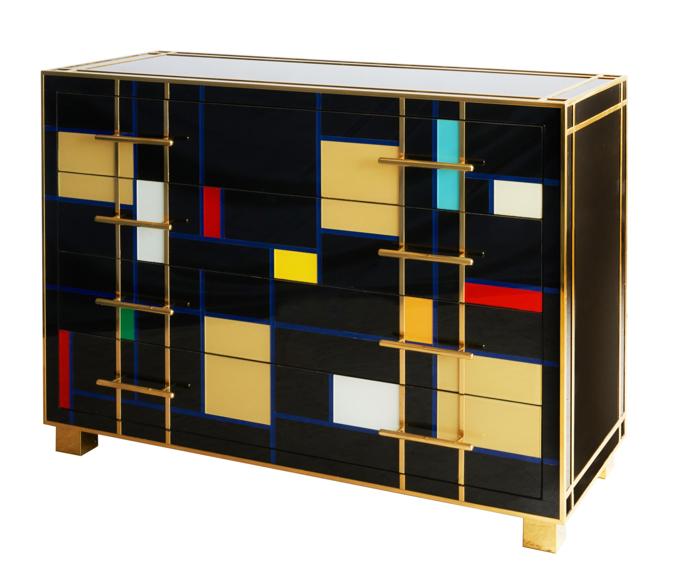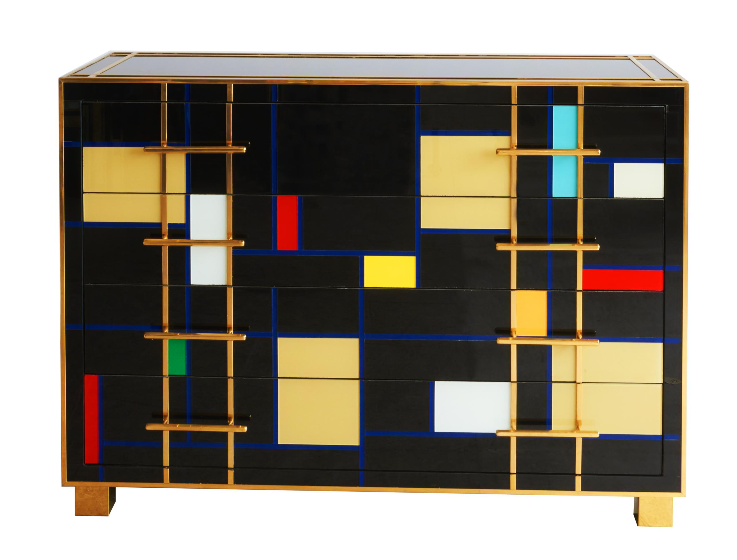 MOBILE 4 CASSETTI LEGNO VETRO OTTONE