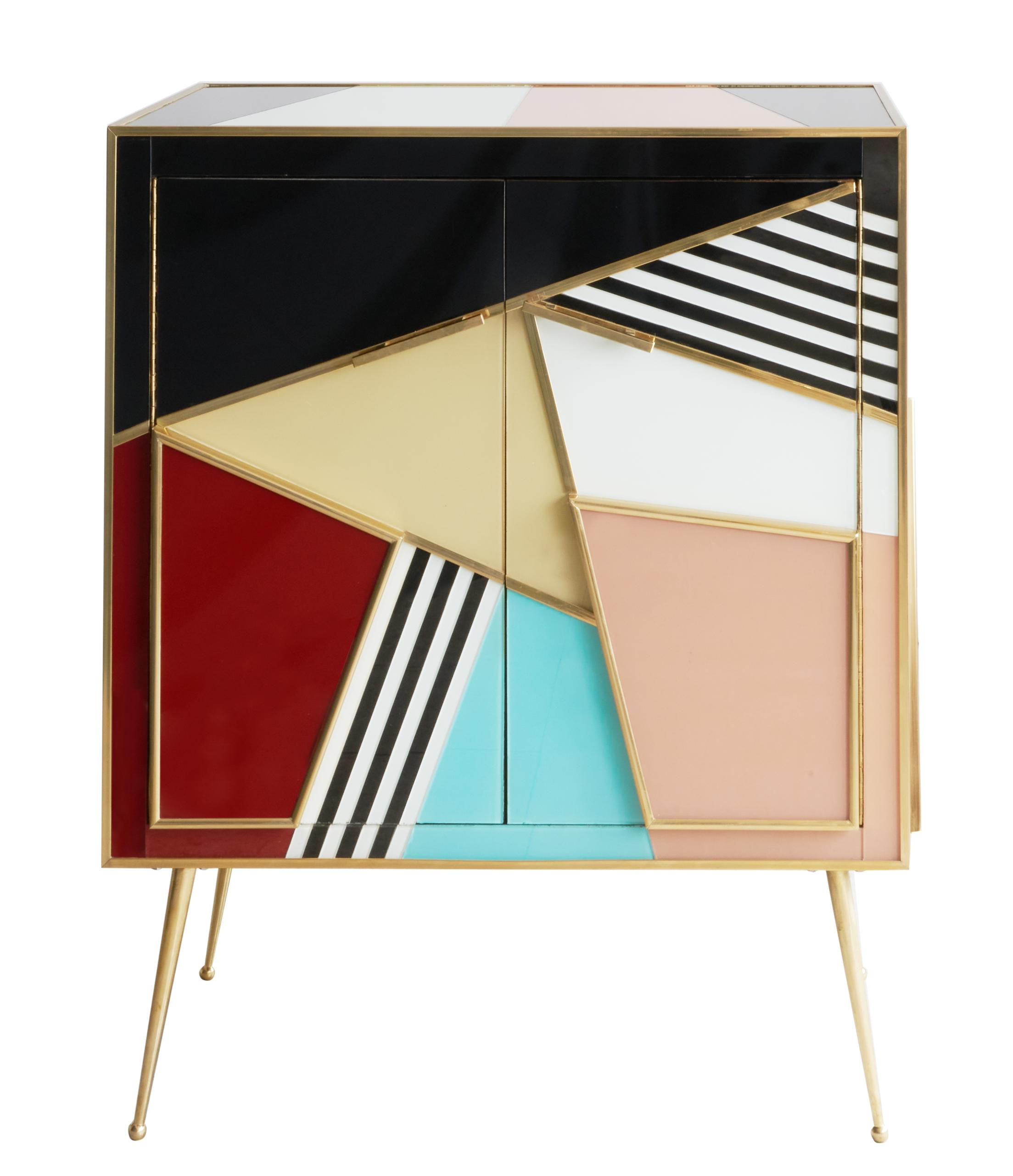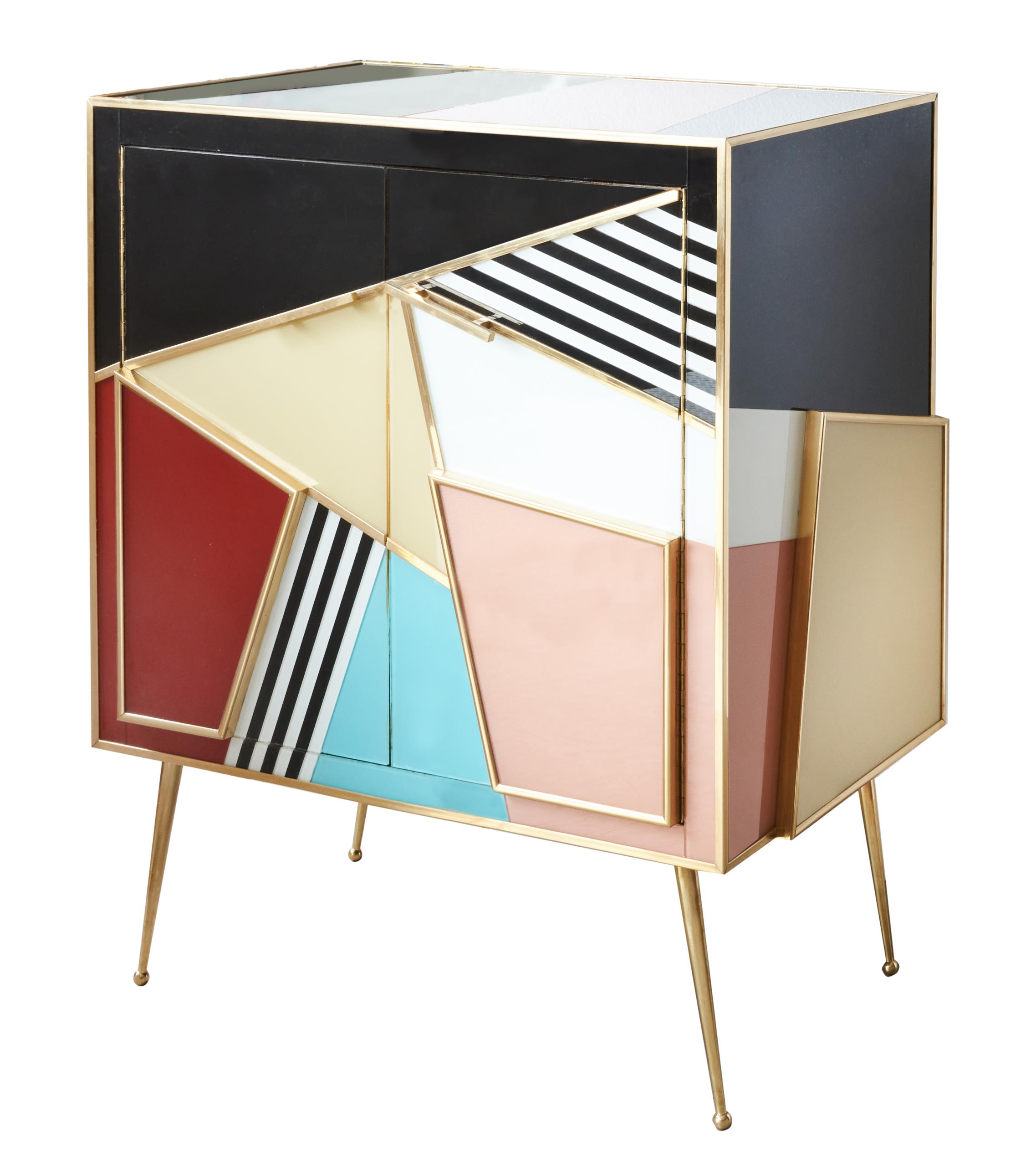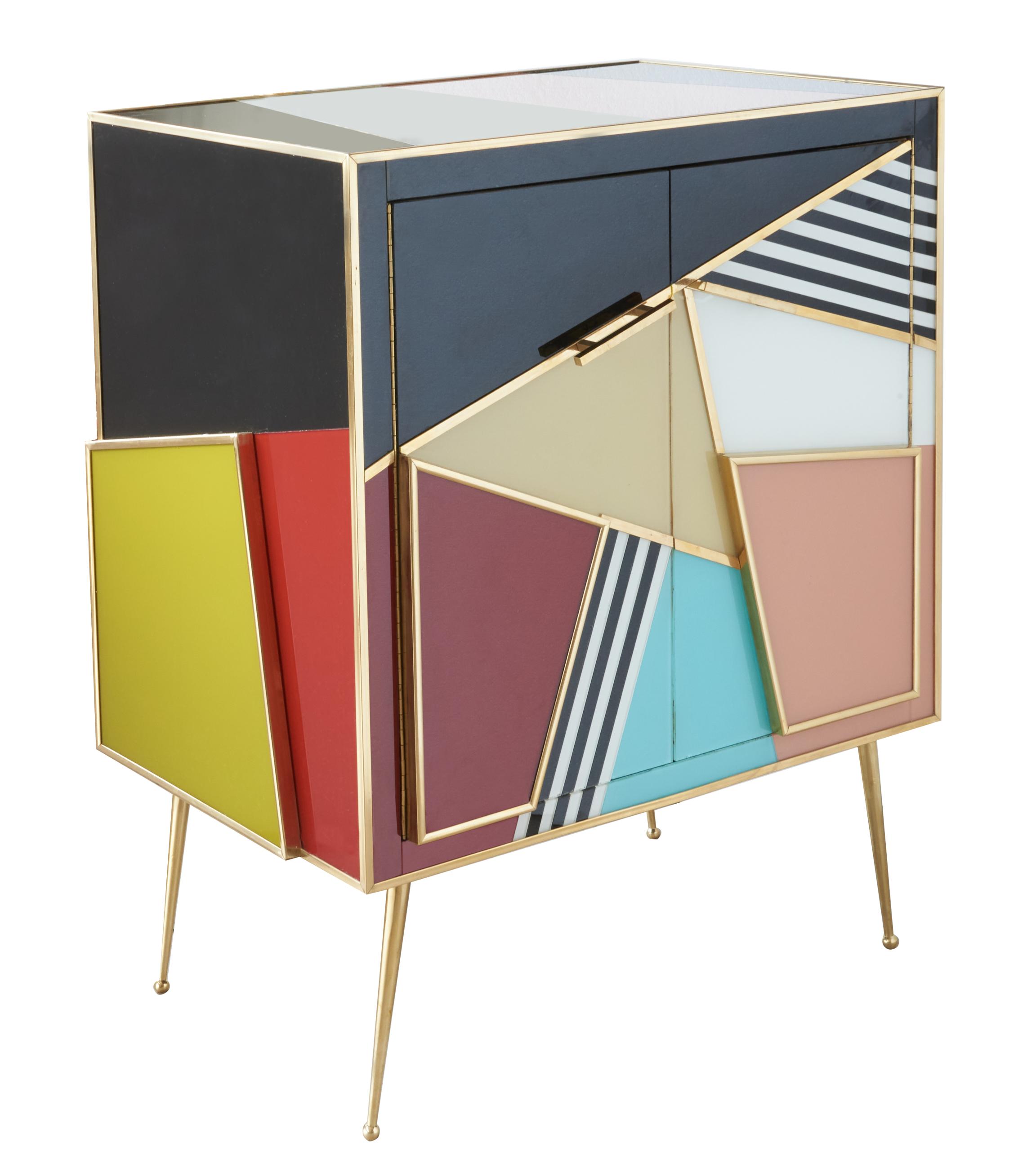 MOBILE 4 CASSETTI LEGNO VETRO OTTONE