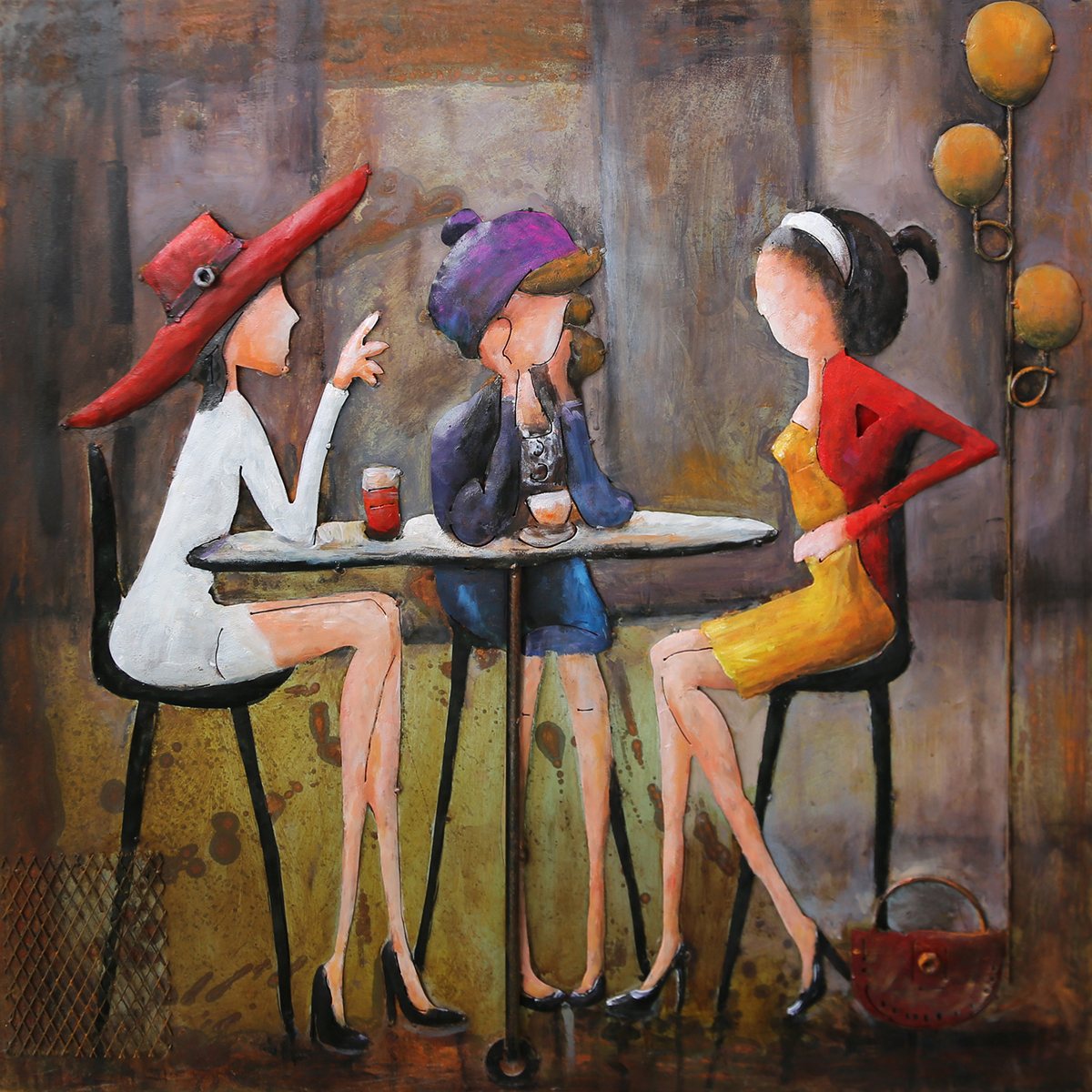 QUADRO MET.3D RAGAZZE AL BAR