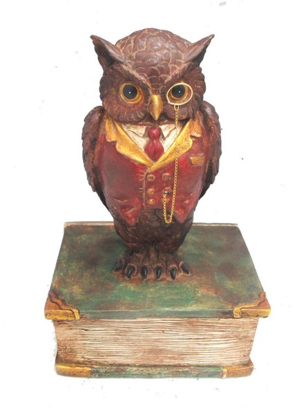 STATUA GUFO SU LIBRO C/OROLOGIO